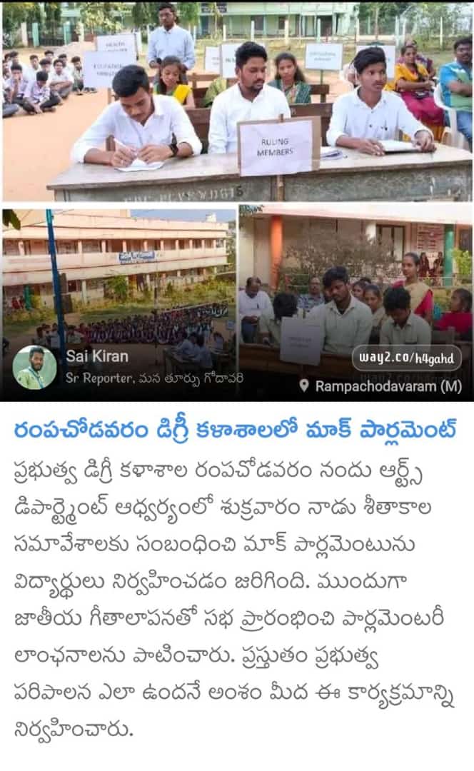 Department of Political science conducted mock parliament session in the college premises by the students on 01/12/2023