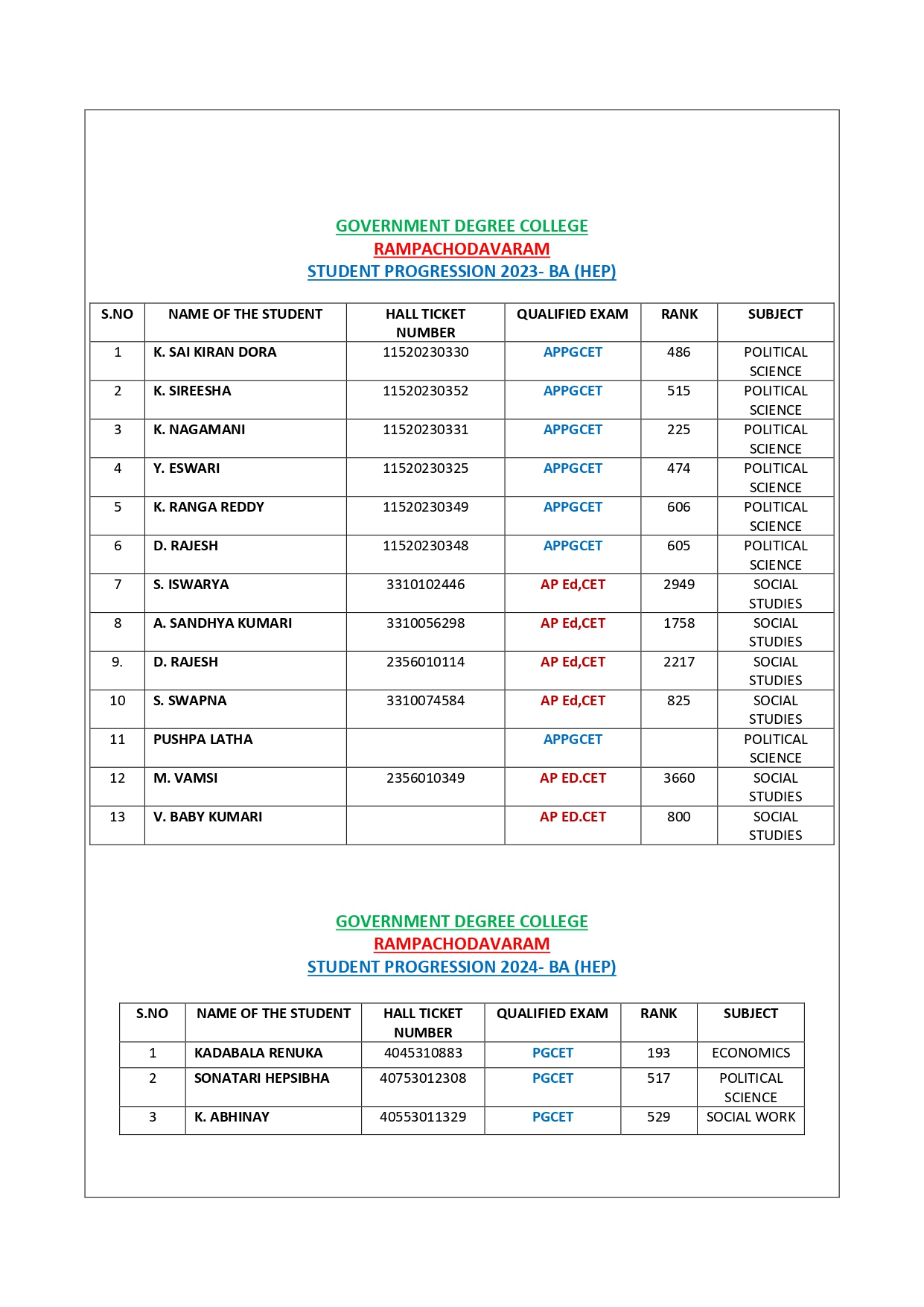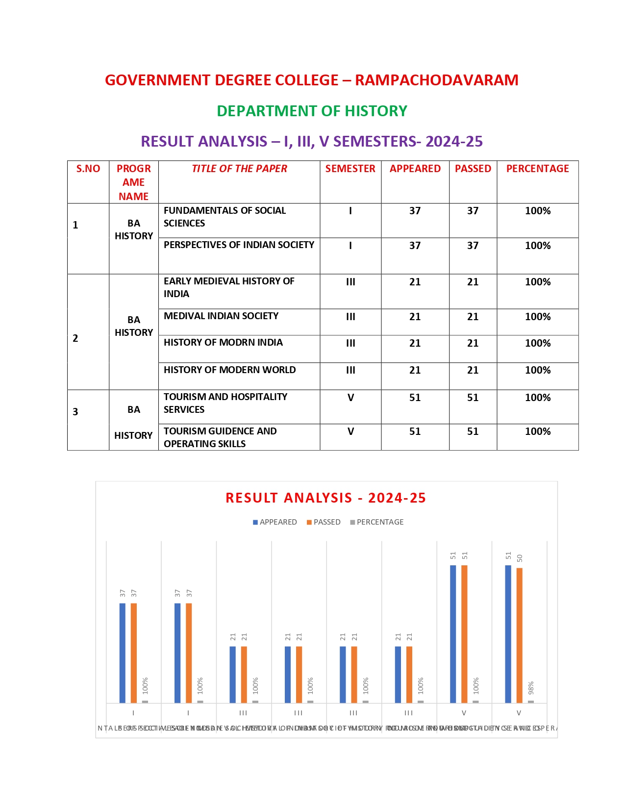 Established in the academic year 1983-84, the Department of History was one of the founding department of the Govt. Degree College, Rampachodavaram. It is having approximately 113 students. Every year, History outgoing students got B.Ed and P.G entrance test ranks. HEP programme was introduced in 1983 with Telugu medium. History cluster system was introduced in 2017-2018. The Department of History at Government Degree College, Rampachodavaram, has evolved significantly since its inception, recently introducing a dedicated major in history to accommodate growing interest in the discipline. In 2023, the college formally established the major system for History with an initial intake capacity of 40 students. Currently, there are 40 students enrolled in the first year of the history major, and 21 students in the second year. Meanwhile, 52 third-year students are enrolled in the History, Economics, and Political Science (HEP) combination.The department emphasizes a well-rounded educational approach, organizing a variety of activities aimed at enhancing both academic and personal development. Among these initiatives are student seminars, quizzes, guest lectures, and peer-learning sessions, all of which encourage students to engage deeply with historical content and improve their critical thinking and public speaking skills. Project work is also integrated into the curriculum, allowing students to conduct research, work collaboratively, and present their findings, thereby gaining hands-on experience in historical inquiry and analysis.These educational practices contribute to the overall development of students, equipping them with a deeper understanding of history and essential skills in research, analysis, and communication. The department’s efforts to create a stimulating academic environment underline its commitment to fostering an engaging and supportive learning community. A National webinar was also conducted in the month of January 22,2022.